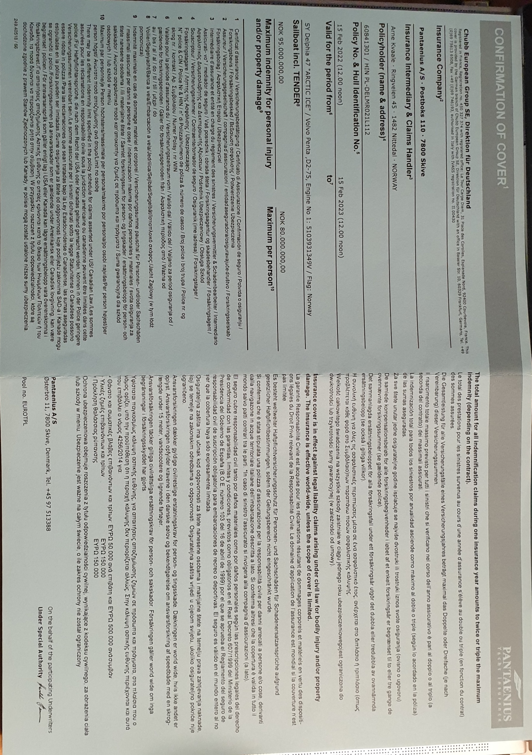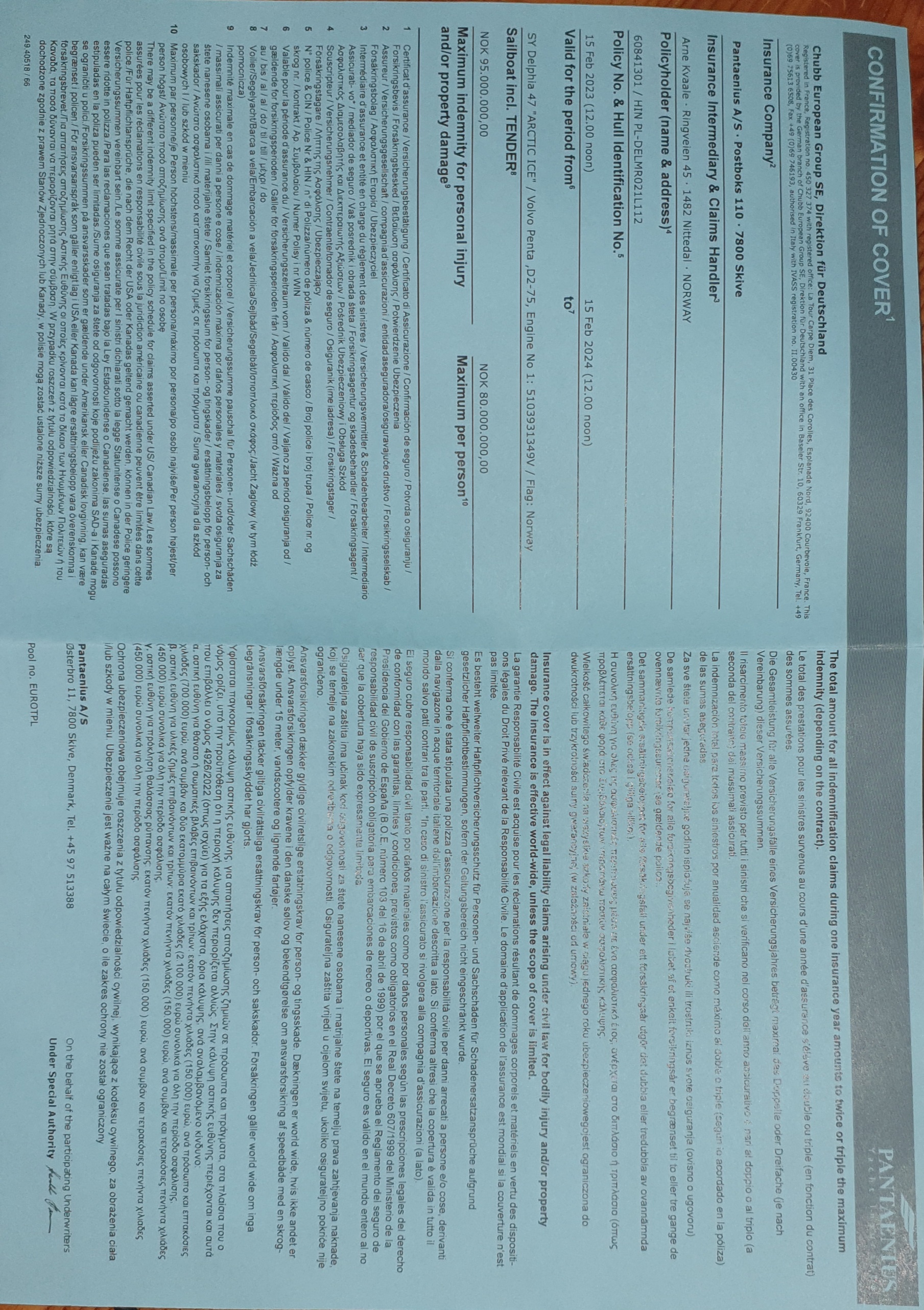 Svalbard yacht insurance €294.118